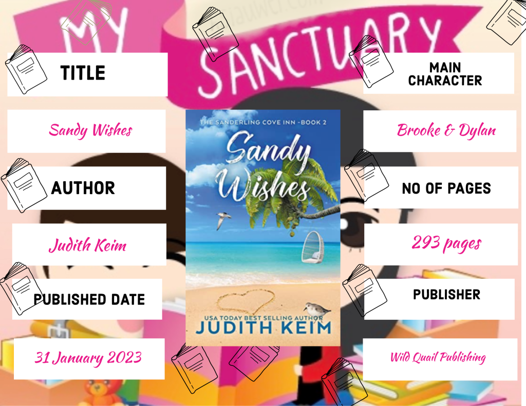 Brooke Weatherby is tired of being the dependable one, the boring one of everyone at Sanderling Cove. She agreed to come to the cove for the summer unaware her two cousins, Charlotte “Charlie” Bradford and Olivia “Livy” Winters, would also be there to help manage The Sanderling Cove Inn while her grandparents take a long road trip in Europe. More than anything, she wishes for independence from her role as a sometime caretaker of her mother, so she’s free to find true love.
