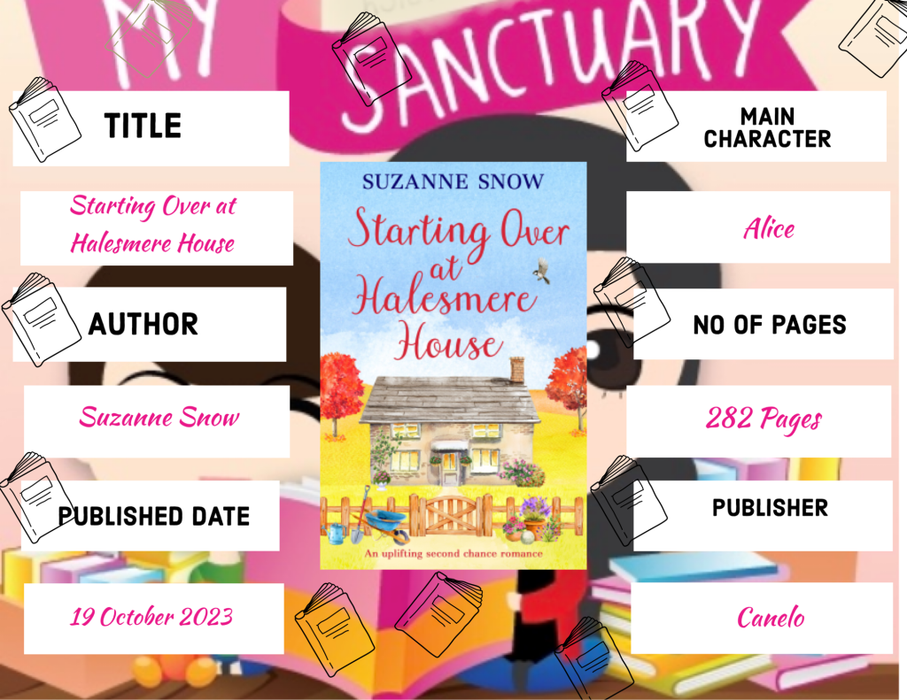 Taking over the Flower Shed studio at Halesmere, Alice is looking to mend her heart through horticulture after the end of her ten-year marriage. She isn’t looking for romance, especially not with brash young tree surgeon, Zac.