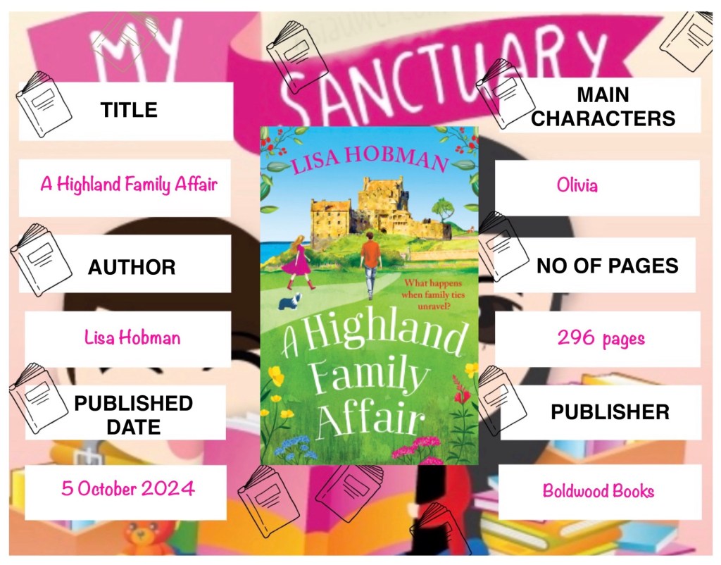 A Highland Family Affair by Lisa Hobman is a heartwarming novel set at Drumblair Castle in the Scottish Highlands. Lady Olivia MacBain deals with the fallout from her brother Kerr’s past mistakes, while hoping her childhood love, Brodie, will propose. Kerr’s sudden return, claiming he has changed, adds tension, though he starts building a bond with a teenager named Will. The story focuses on Olivia’s relationships, offering a sweet, character-driven narrative with touches of humor, especially from the quirky Isla. Overall, it’s a light and enjoyable read, perfect for fans of family and romance-driven stories.